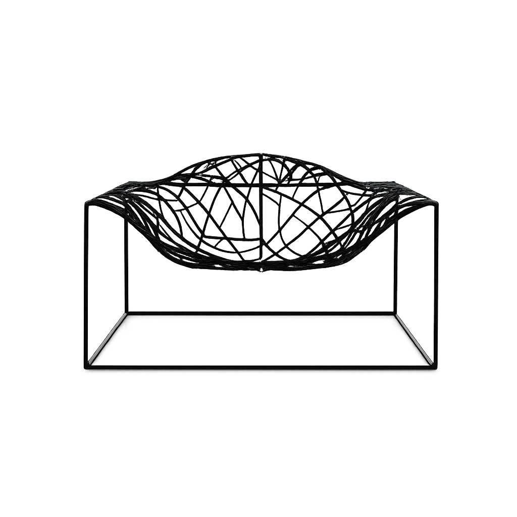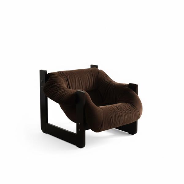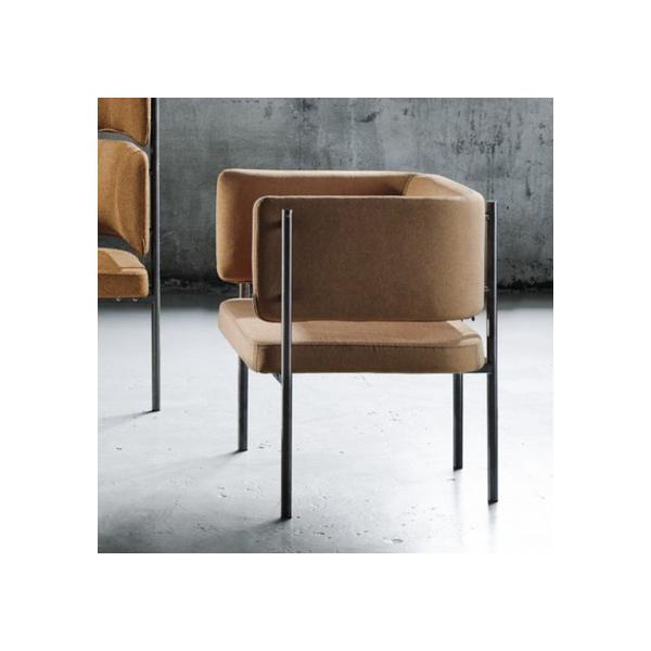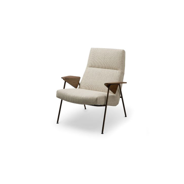 Poltrona com Estrutura em Aço e Encosto em Madeira